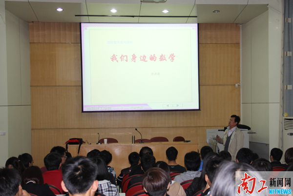4月24日晚,淯阳大讲堂“我们身边的数学”讲座在中込会馆报告厅举行。讲座由我校数理学院院长许洪范教授主讲。